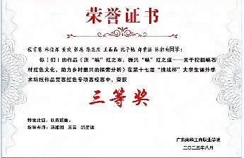 2023年3月,获第十七届“挑战杯”广东南华工商职业学院大学生课外学术科技作品校赛二等奖;