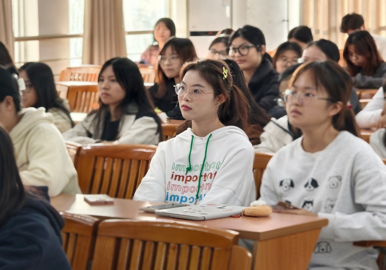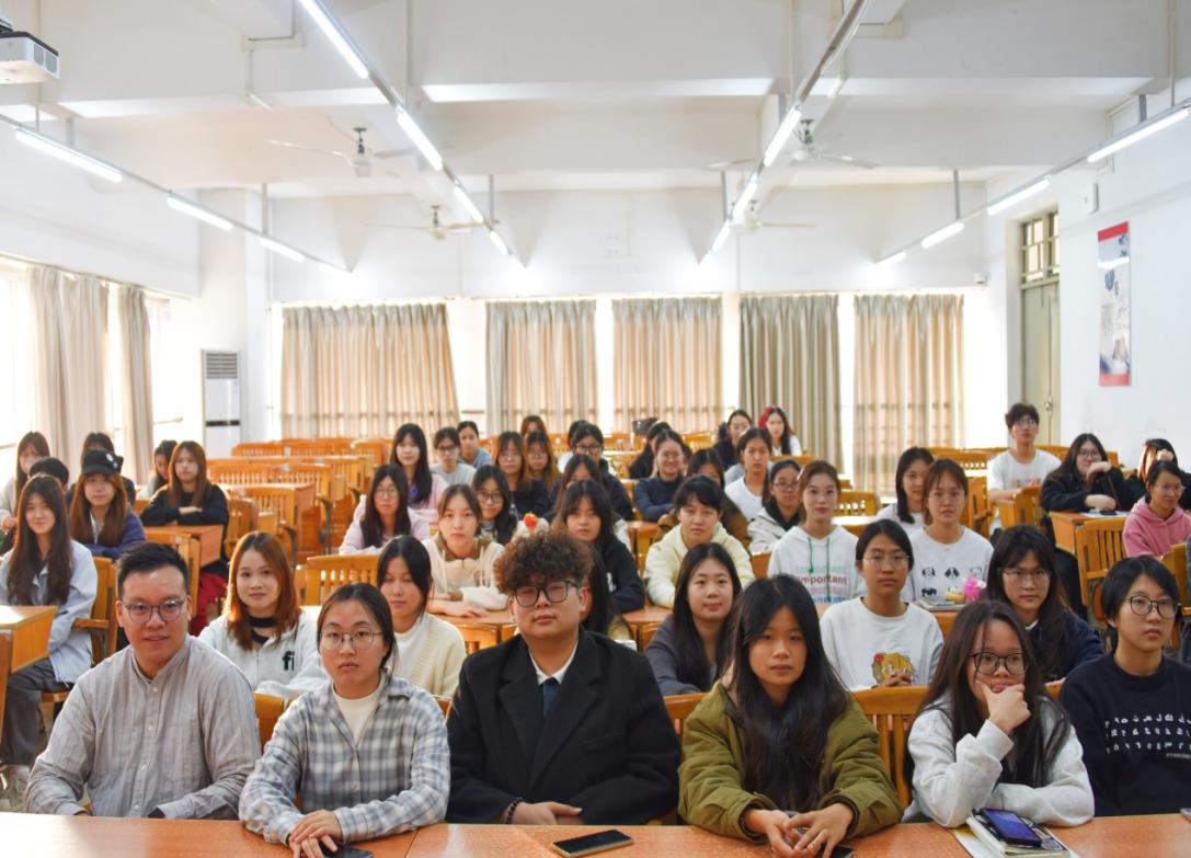珠海长隆投资发展有限公司人事主管刘健现场讲解了长隆集团的全面薪酬福利待遇体系、岗位的职业和具体要求,同时也分享缤纷多彩的员工活动。同学们积极互动,纷纷提问,热情饱满。