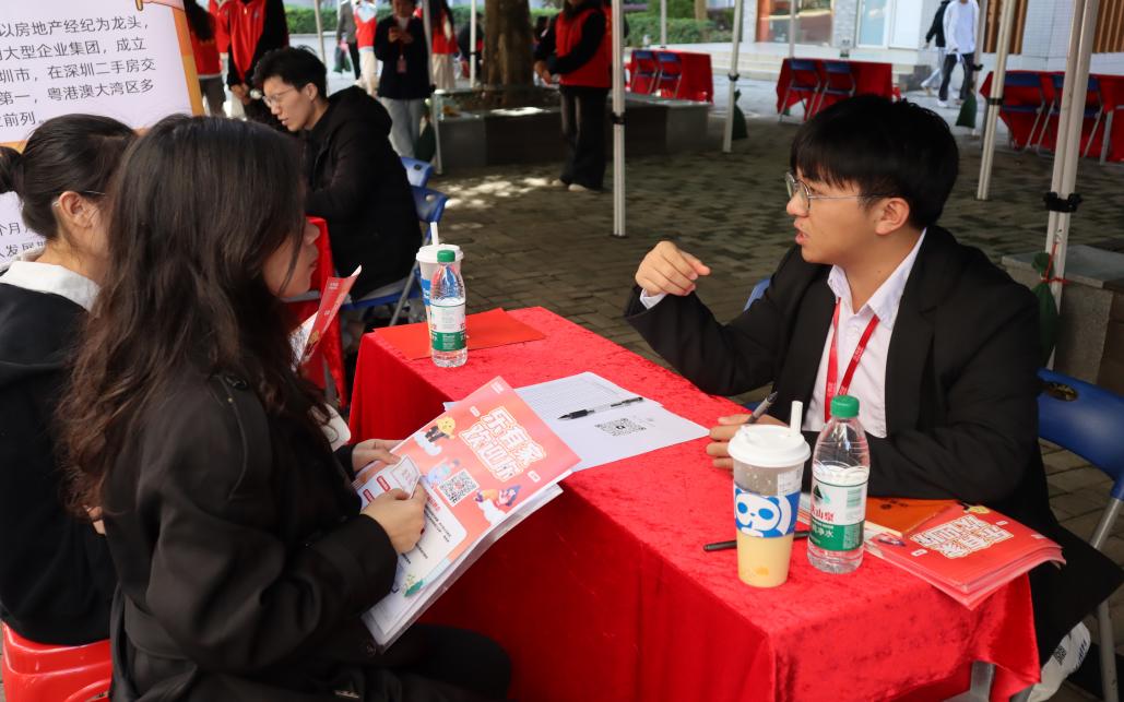 11月26日下午,外语外贸学院(下称“外院”)举办2025届毕业生专场校园招聘会,珠海长隆投资发展有限公司、清远万达广场商业管理有限公司、清远市广硕鞋业有限公司等16家企业来校招聘。