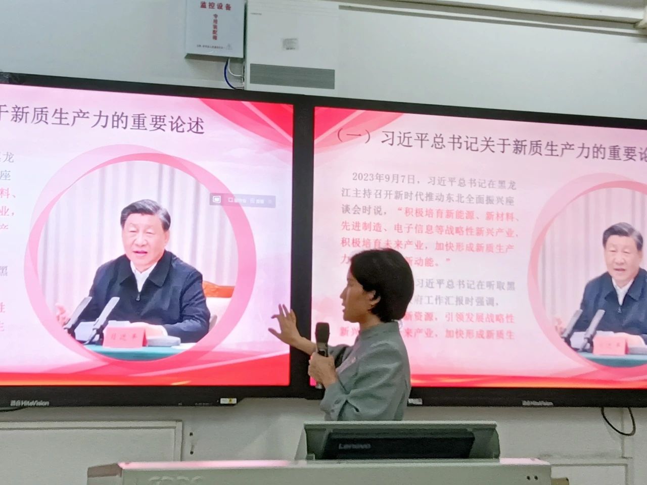 随着全国两会的召开,“新质生产力”成为热议话题,被明确写入政府工作报告。学前教育学院紧跟国家发展战略,于3月26日在教学楼319举办了以“新质生产力与教育创新”为主题的“第一堂思政课”。本次课堂由学院党支部书记赵玲霞主讲。
