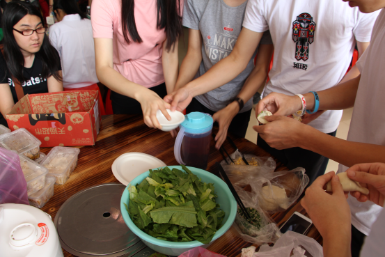 会后,黄埔校区勤工助学管理中心学生干部参观了清远校区校园,一些从清远迁回黄埔的干部,边参观边回忆他们去年在清远校区的学习和生活,同时感慨清远校区这一年来的变化,校园变得更绿更美了。在就餐的时候,大家进行了现场包饺子的互动环节,就餐完毕之后,回到实验楼架空层进行了游戏环节,在游戏环节中大家自由组队,并肩作战,加深了两校区的互动交流,促进两校区之间的友谊。
