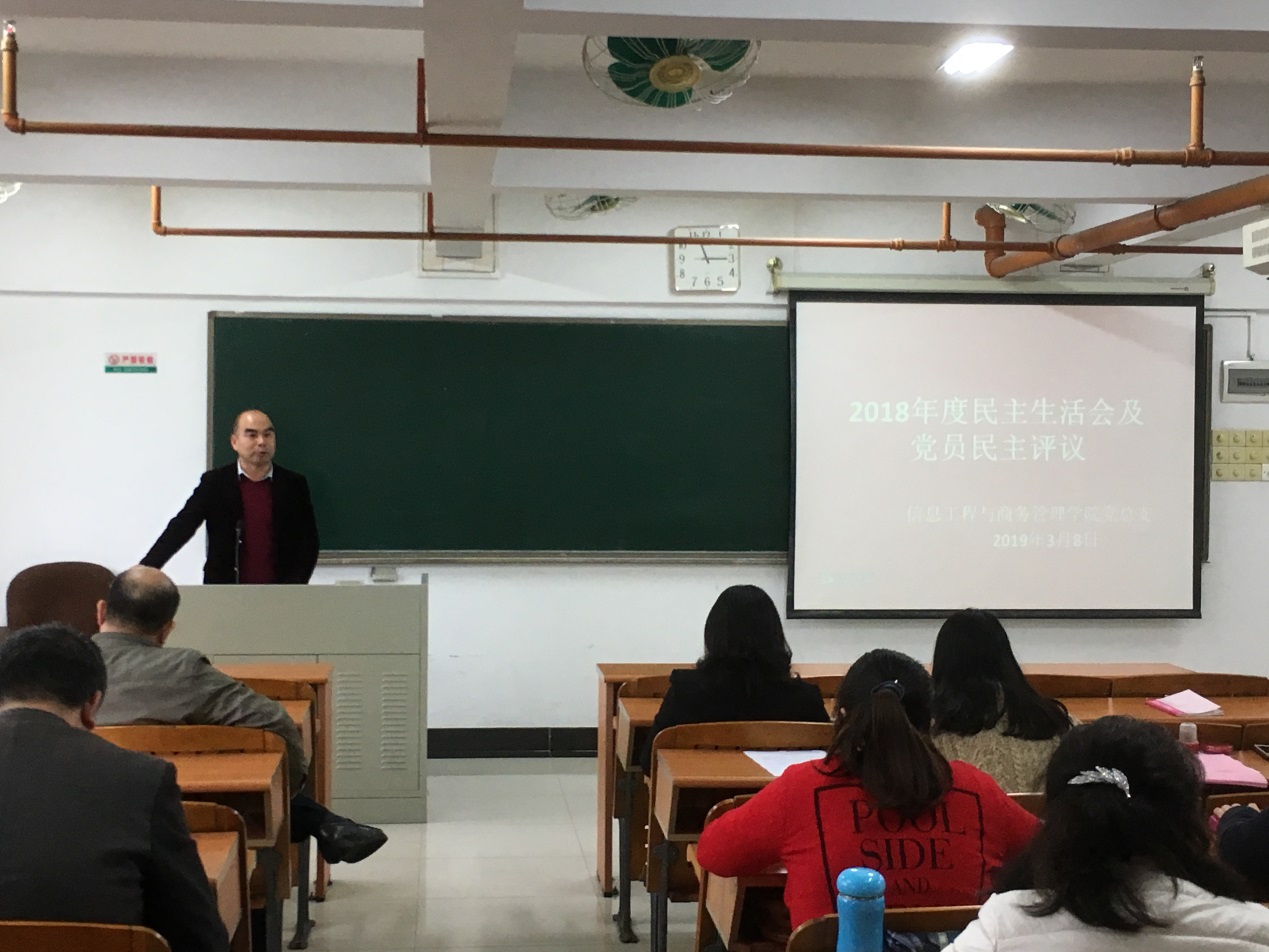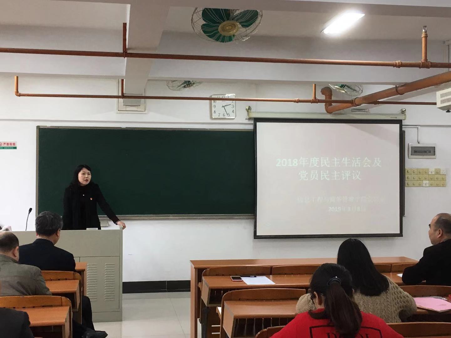 按照《中共广东省委组织部< 关于做好2018年度基层党组织组织生活会和民主评议党员有关工作的通知>》文件精神,根据学校党委统一部署,信商学院党总支部于3月8日下午在天河校区综合楼702召开2018年度民主生活会,进行党员民主评议。学校党委委员、副校长、信商学院联系人王满元到会指导,信商学院党总支部全体党员参会,会议由信商学院党总支部副书记凌红主持。