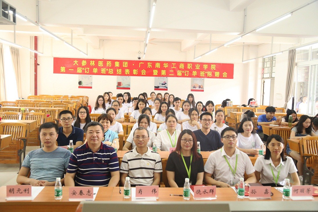 为全面落实党的十九大提出的“校企合作、精准育人”的职教目标,信息工程与商务管理学院与大参林医药集团股份有限公司积极深化校企合作,有针对性地为健康中国战略培养医药人才。16级大参林订单班自2017年6月成班以来,经过一年的校企联合培养,即将进入企业实践学习。6月21日在清远校区,信商学院与大参林联合举行“第一届大参林‘订单班’总结表彰会暨第二届‘订单班’招聘会”,共同见证同学们一年来的学习成果,让校企合作持续向前推进。