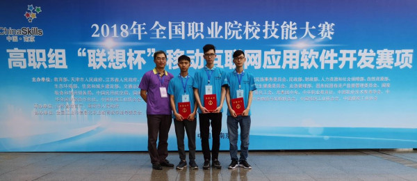 5月22日,我校学生团队在2018年全国职业院校技能大赛“移动互联网应用软件开发”赛项获团体二等奖。该团队由信息工程与商务管理学院温杰宇、曹嘉、刘国栋三名同学组成,杨家成、刘天麒担任指导老师。