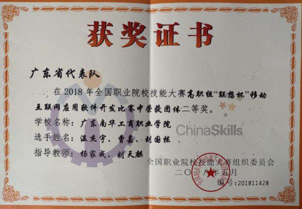 本次比赛成绩也是广东南华工商职业学院“一院一特色”中,信息工程与商务管理学院移动互联应用专业的阶段性成果,该专业在与同类一流专业的多次省级、国家级技能竞赛同场竞技中持续获得自信,并将在创新强校工程中保持创新实干的精气神,开拓专业发展的新局面。