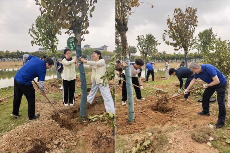 “树苗要扶正,培土要踩实,水要浇透……”植树过程中,师生们对每一个细节都精益求精。一名参与活动的学生团员代表感慨道:“亲手种下一棵树,让我对‘绿水青山就是金山银山’的发展理念有了更深刻的体悟。作为新时代青年,我们要争做生态文明建设的践行者,以青春之力为‘绿美广东’增添动人底色。”