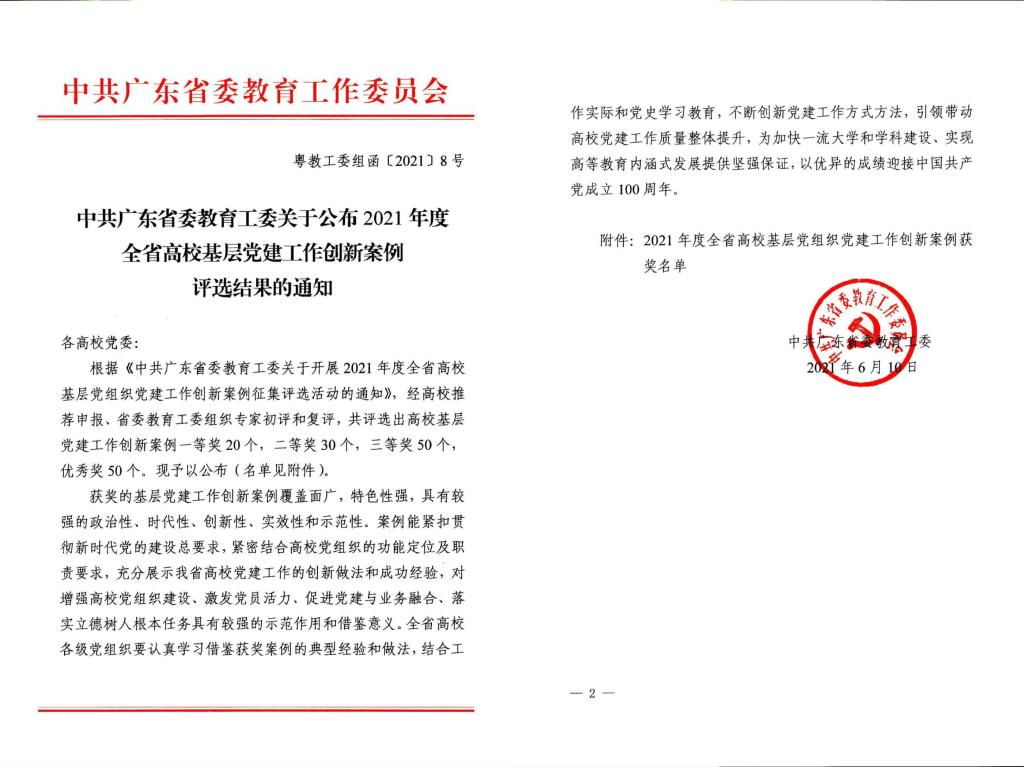 我校喜获2021年度全省高校基层党组织党建工作创新案例三等奖