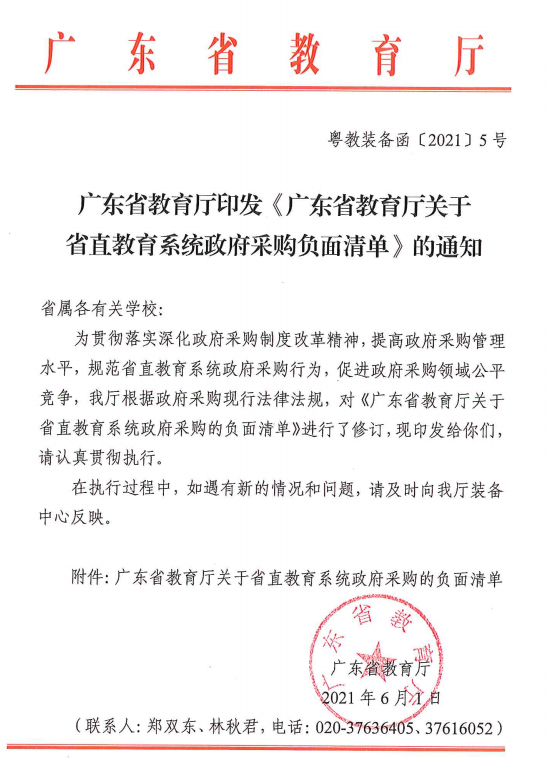 广东省教育厅印发《广东省教育厅关于省直教育系统政府采购的负面清单》的通知