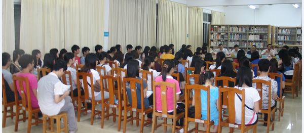 2012年5月21日晚上7点,图书馆在黄埔校区举办了第五期读书心得座谈会。活动主题为“让阅读成为习惯”,易江院长、刘玉学教授、杨先进老师、魏晓林老师、蔡宏标老师应邀担任主讲嘉宾。谢曼馆长主持了座谈会,70余名学生参加了活动。