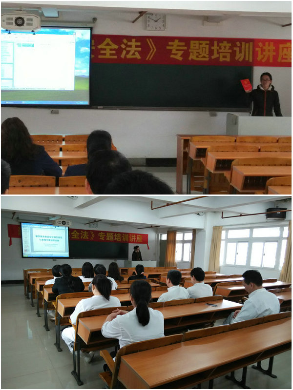 12月14、 17、18日,总务处分别在天河、黄埔和清远三校区对学院五个食堂的工作人员开展新《食品安全法》专题培训讲座。