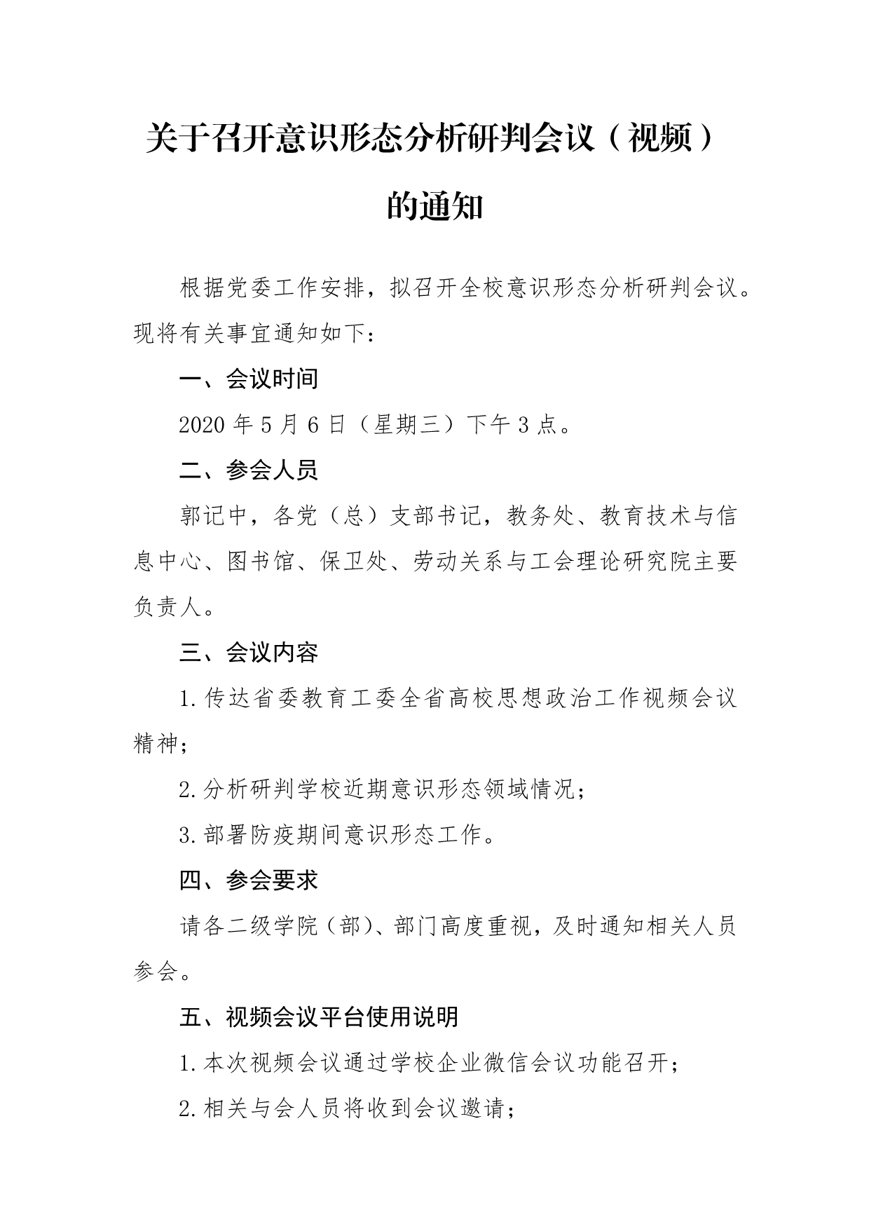 关于召开意识形态分析研判会议(视频)的通知